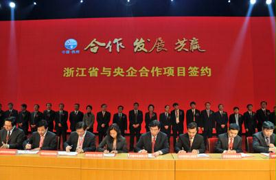 國務院國資委與浙江省簽訂備忘錄后,浙江省與部分中央企業簽署了戰略合作框架協議,部分中央企業與浙江相關單位簽署了合作協議。