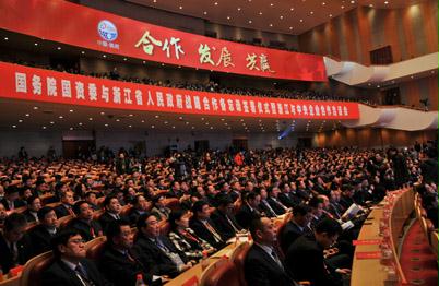 12月26日,國務院國資委與浙江省政府在杭州簽署《浙江省人民政府與國務院國有資產監督管理委員會合作備忘錄》,并共同舉辦浙江與中央企業合作洽談會,商定在“十二五”期間,共同推進中央企業與浙江進行深入和廣泛的戰略合作,充分發揮浙江區位優勢,促進多種所有制企業共同發展。國務院國資委主任、黨委書記王勇與浙江省委副書記、代省長夏寶龍代表雙方簽署合作備忘錄。浙江省委書記趙洪祝出席儀式并講話。國務院國資委副主任黃丹華、金陽,副秘書長郭建新出席簽字儀式。