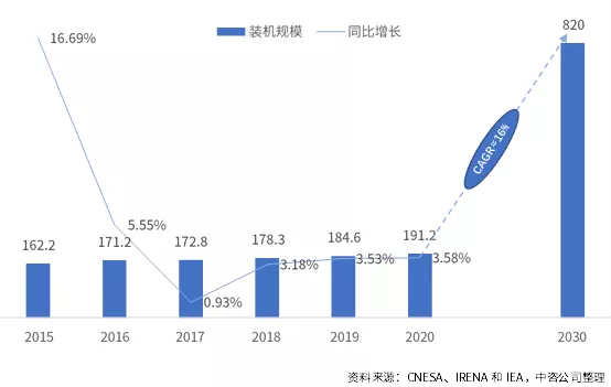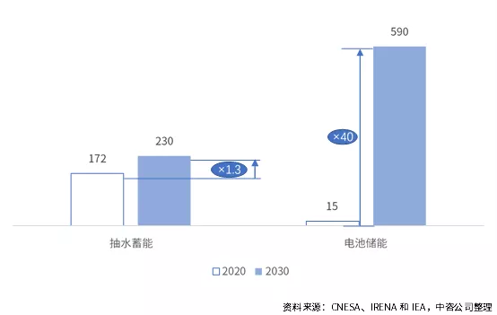 在落實“雙碳”目標的重要背景下,我國能源結構調整與新型電力系統(tǒng)建設勢在必行。隨著源網(wǎng)荷儲一體化深度協(xié)調互動,靈活的能源電力系統(tǒng)新模式將日漸顯現(xiàn)。這一進程將催生大量儲能應用場景與裝配需求,儲能將扮演不可替代的關鍵角色。2021年4月國家發(fā)展改革委、國家能源局印發(fā)的《關于加快推動新型儲能發(fā)展的指導意見(征求意見稿)》(以下簡稱《指導意見》)強調儲能是支撐新型電力系統(tǒng)的重要技術和基礎裝備,對推動能源綠色轉型、應對極端事件、保障能源安全、促進能源高質量發(fā)展、實現(xiàn)碳達峰碳中和具有重要意義。 01國際、國內(nèi)儲能建設規(guī)模分析及預測 在碳中和背景下,國際國內(nèi)權威機構、政府機關和中央企業(yè)結合當前實際與發(fā)展要求,紛紛預測或提出儲能裝機規(guī)模的時間表、路線圖。總體來看,在各國政府大力引導推動下,國際國內(nèi)儲能市場將高速增長。 (一) 國際儲能建設規(guī)模 全球儲能裝機規(guī)模未來十年將高速增長。2018~2020年全球儲能新增裝機容量分別為5.5GW、6.3GW、6.5GW,三年年均復合增長率為3.5%。根據(jù)國際可再生能源署(IRENA)展望報告《電力儲存與可再生能源:2030年的成本與市場》的基本預測情景中提出,到2030年,抽水蓄能裝機將達到約230GW;另據(jù)國際能源署(IEA)《2050凈零排放:全球能源路線圖》報告中預測,電池儲能到2030年裝機規(guī)模將達到590GW。2030年,在僅考慮抽水蓄能和電池儲能的情況下[1],儲能總裝機規(guī)模將達到約820GW,2020~2030年復合增長率約16%。 圖 1 2015-2020年全球儲能市場累計裝機規(guī)模(單位:GW) 電池儲能將成為儲能新增裝機的重要來源和未來儲能的主要裝機支撐。截至2020年底,全球儲能已投運項目累計裝機規(guī)模為191GW,其中抽水蓄能裝機規(guī)模為172GW,占比90%,電池儲能裝機15GW,抽水蓄能占據(jù)絕對主導地位。根據(jù)IRENA和IEA預測的抽水蓄能和電池儲能裝機情況,到2030年,抽水蓄能裝機增加至230GW,2020~2030年復合增長率約3%,電池儲能裝機增加至590GW,2020~2030年復合增長率約44%。據(jù)此推算,到2030年,抽水蓄能裝機與電池儲能裝機比例約為1:2.5,電池儲能占比超過70%,成為未來儲能重要支撐性裝機來源。 圖 2 2020-2030年全球抽水蓄能和電池儲能累計裝機規(guī)模(單位:GW) (二) 國內(nèi)儲能建設規(guī)模 2020年我國新增儲能裝機2.6GW,儲能總裝機規(guī)模約34GW。根據(jù)CESA數(shù)據(jù),2020年我國新增儲能裝機2.6GW,其中抽水蓄能新增裝機容量為1.8GW,占比為69.5%,電池儲能新增裝機容量為0.79MW,占比30.4%。根據(jù)《中國電力行業(yè)年度發(fā)展報告2021》與CNESA數(shù)據(jù)推測,截至2020年底,我國儲能總裝機規(guī)模約34GW,其中抽水蓄能約31GW,電池儲能約3GW。 到2025年,我國儲能裝機規(guī)模新增60GW以上,有望達到94GW。《指導意見》提出,計劃到2025年,新型儲能[2]裝機規(guī)模達30GW以上。此外,國家電網(wǎng)透露其在運、在建抽水蓄能裝機規(guī)模達到62GW,“十四五”期間,將力爭新增開工20GW以上;南方電網(wǎng)透露,其到2025年將投產(chǎn)5GW抽水蓄能電站。保守估計,“兩網(wǎng)”在“十四五”期間或將新增30GW以上抽水蓄能裝機。“十四五”期間,我國新增抽水蓄能和電池儲能裝機或將超過60GW。其中,新增裝機中一半為電池儲能、一半為抽水蓄能,電池儲能年復合增長率約為58%,抽水蓄能年復合增長率為14%,電池儲能增速將遠高于抽水蓄能。 02 儲能發(fā)展面臨的挑戰(zhàn) 大力發(fā)展儲能已形成良好的政府間共識和技術基礎,但仍面臨重重挑戰(zhàn)。 (一) 建設成本仍高昂,商業(yè)模式不清晰 電池儲能雖然相較其他儲能而言具備綜合性成本優(yōu)勢,但全生命周期度電成本仍然偏高,位于0.5~1.5元/kwh之間,遠高于進入平價時代的風光電價。據(jù)專家預測,在目前體制機制下,儲能度電成本需要下降到0.1~0.3元,行業(yè)內(nèi)多數(shù)企業(yè)才能具備足夠的承擔能力,方可形成在全國大面積鋪開的商業(yè)模式。 (二)政策形勢不明朗,資本觀望氛圍濃 儲能對傳統(tǒng)電力系統(tǒng)而言是新生事物,相關部委關于儲能未來科學合理的監(jiān)管模式尚未達成共識。導致了行業(yè)發(fā)展在效率考量與安全考慮間徘徊、在政府主導與市場自主間徘徊,傳導至資本市場則體現(xiàn)為投資的忽冷忽熱,不利于形成穩(wěn)定的預期和增量式資本導入。 (三) 標準體系未建立,安全運營存隱患 目前對適應我國儲能產(chǎn)業(yè)發(fā)展的安全策略尚未形成頂層共識,電池儲能的安全標準仍未建立,特別是貫穿儲能產(chǎn)品設計、研發(fā)、生產(chǎn)、集成等各個流程的系統(tǒng)安全體系尚未形成,導致儲能產(chǎn)品安全性與可靠性檢測與驗證滯后產(chǎn)業(yè)發(fā)展,部分地區(qū)甚至發(fā)生嚴重的儲能電站起火爆炸事故,引發(fā)公眾恐慌。 (四) 公眾吸引力度小,用戶儲能開發(fā)慢 受電動自行車和新能源汽車自燃爆炸等負面消息影響,個人用戶對家用中小型電池儲能產(chǎn)品安全性存在擔憂;同時,峰谷電價特別是民電峰谷電價的彈性不足,無法對大眾用戶形成可預期收益拉動。導致了我國面向大眾的用戶側儲能建設幾乎空白,與部分發(fā)達國家的差距不斷拉大。 03 促進儲能發(fā)展的若干建設 為更好地發(fā)