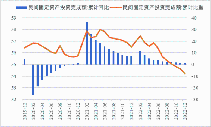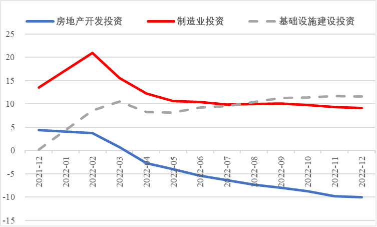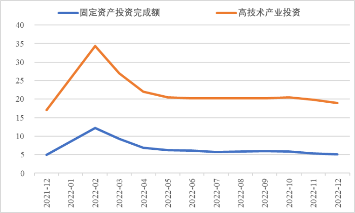 2022年,面對復(fù)雜嚴峻的國際環(huán)境和國內(nèi)疫情挑戰(zhàn),我國投資整體表現(xiàn)較強韌性,對穩(wěn)定經(jīng)濟基本盤發(fā)揮了壓艙石作用。基礎(chǔ)設(shè)施和部分制造業(yè)成為穩(wěn)投資的重點領(lǐng)域,中西部地區(qū)投資增長動能強勁。同時,制造業(yè)承壓加劇、房地產(chǎn)投資下行、地方債高壓、社融需求走弱等突出問題制約投資持續(xù)穩(wěn)定增長,穩(wěn)投資壓力仍然較大。做好2023年投資促進工作,關(guān)鍵是把擴大有效投資同優(yōu)化供給結(jié)構(gòu)有機結(jié)合起來,持續(xù)擴大高技術(shù)產(chǎn)業(yè)投資,多舉措穩(wěn)定房地產(chǎn)投資,更好發(fā)揮政府投資的引導(dǎo)作用,充分釋放社會投資需求潛能。 一、固定資產(chǎn)投資整體運行情況 (一)整體投資韌性超出預(yù)期,民間投資呈下行趨勢 2022年1—12月,我國固定資產(chǎn)投資(不含農(nóng)戶,下同)572138億元,同比增長5.1%。一季度投資增速達到9.3%的年內(nèi)高點,上半年、前三季度分別降至6.1%、5.9%,年初投資增速較高的重要原因是2022年專項債部分限額提前下達等系列政策發(fā)揮效果,之后受國外地緣政治沖突、國內(nèi)疫情多點散發(fā)等因素影響,投資增速有所下降,但降幅逐季收窄。一季度、上半年、前三季度、全年固定資產(chǎn)投資增速分別較同期國內(nèi)生產(chǎn)總值增速高了4.5個、3.6個、2.9個和2.1個百分點,投資成為當前穩(wěn)定宏觀經(jīng)濟大盤的關(guān)鍵力量。 圖1 全國固定資產(chǎn)投資增速 (累計同比,%) 數(shù)據(jù)來源:國家統(tǒng)計局 1—12月,我國固定資產(chǎn)投資三年平均增速為4.3%,低于2019年同期1.1個百分點,全面恢復(fù)到疫情前水平仍需一定時間。尤其是民間投資受疫情沖擊較為嚴重,復(fù)蘇難度較大。一季度、上半年、前三季度、全年民間投資分別同比增長8.4%、3.5%、2%、0.9%,低于整體投資增速0.9個、2.6個、3.9個、4.2個百分點,與整體投資增速的差距逐季拉大。從占比看,截至12月底民間投資累計占固定資產(chǎn)投資的比重已降至54.2%,低于2019年同期2.2個百分點。 圖2 民間投資增速及占比(%) 數(shù)據(jù)來源:國家統(tǒng)計局,Wind數(shù)據(jù)庫 (二)基礎(chǔ)設(shè)施、制造業(yè)投資支撐作用明顯,房地產(chǎn)市場持續(xù)低迷 制造業(yè)投資在外需帶動和政策支撐下展現(xiàn)較強韌性,2022年1—12月制造業(yè)投資同比增長9.1%,比整體投資高4個百分點。在內(nèi)需受疫情影響明顯收縮的情況下,制造業(yè)投資超預(yù)期增長很大程度上得益于外需對出口的拉動。我國全年貨物出口額累計同比增長10.5%,裝備制造、消費品制造等領(lǐng)域海外訂單持續(xù)旺盛,機電產(chǎn)品占進出口總額的49.1%,汽車出口大幅增長82.2%。技改投資繼續(xù)發(fā)揮對制造業(yè)投資的拉動作用。1—11月,制造業(yè)企業(yè)技改投資同比增長9.1%,占全部制造業(yè)投資的比重達40.9%。 基礎(chǔ)設(shè)施投資在增加政策性開發(fā)性金融工具額度、用好專項債等融資支持政策以及各地區(qū)各部門積極貫徹落實穩(wěn)增長系列政策推動下,連續(xù)8個月回升,1—12月同比增長9.4%,高于全部投資增速4.3個百分點。其中,水利管理業(yè)投資和公共設(shè)施管理業(yè)投資分別大幅增長13.6%、10.1%。 表1 1-12月我國各行業(yè)固定資產(chǎn)投資情況 2022年受需求走弱影響,房地產(chǎn)開發(fā)投資增速持續(xù)放緩,一季度僅同比增長0.7%,二季度開始滑落至負增長區(qū)間。1—12月我國房地產(chǎn)開發(fā)投資同比下降10%,降幅較前三季度、上半年分別擴大2個、4.6個百分點,跌幅持續(xù)加深,拖累固定資產(chǎn)投資整體增長。房企土地購置費、施工面積、新開工面積等指標均出現(xiàn)持續(xù)大幅下降。1—12月,房地產(chǎn)開發(fā)景氣指數(shù)均位于100以下,且自2月以來持續(xù)走低。 圖3 三大領(lǐng)域固定資產(chǎn)投資增速 (累計同比,%) 數(shù)據(jù)來源:國家統(tǒng)計局,Wind數(shù)據(jù)庫 高技術(shù)產(chǎn)業(yè)投資引領(lǐng)作用持續(xù)增強。在投資整體下行壓力加大的情況下,高技術(shù)產(chǎn)業(yè)投資逆勢而上,穩(wěn)投資引領(lǐng)作用持續(xù)顯現(xiàn)。2022年高技術(shù)產(chǎn)業(yè)投資同比增長18.9%,比全部投資增速高13.8個百分點。分類別看,高技術(shù)制造業(yè)投資同比增長22.2%,比制造業(yè)整體投資高了13.1個百分點,其中電子及通信設(shè)備制造業(yè)投資增長27.2%,醫(yī)療儀器設(shè)備及儀器儀表制造業(yè)投資增長27.6%,電子、醫(yī)藥制造業(yè)投資大幅增加;高技術(shù)服務(wù)業(yè)投資同比增長12.1%,其中科技成果轉(zhuǎn)化服務(wù)業(yè)投資增長26.4%,研發(fā)設(shè)計服務(wù)業(yè)投資增長19.8%,企業(yè)研發(fā)投入顯著加大。 圖4 高技術(shù)產(chǎn)業(yè)投資增速對比整體投資增速 (累計同比,%) 數(shù)據(jù)來源:國家統(tǒng)計局,Wind數(shù)據(jù)庫 (三)中西部地區(qū)投資增長動力較強,東北地區(qū)增速止跌回升 2022年1—12月,東部地區(qū)投資同比增長3.6%,較前三季度、上半年、一季度分別回落0.7個、0.9個、5.9個百分點;中部地區(qū)投資增長8.9%,較前三季度、上半年、一季度分別回落1.1個、1.8個、5.5個百分點;西部地區(qū)投資增長4.7%,較前三季度、上半年、一季度分別回落2個、3.3個