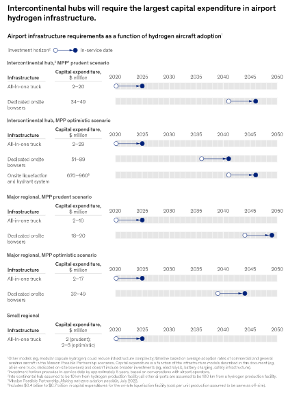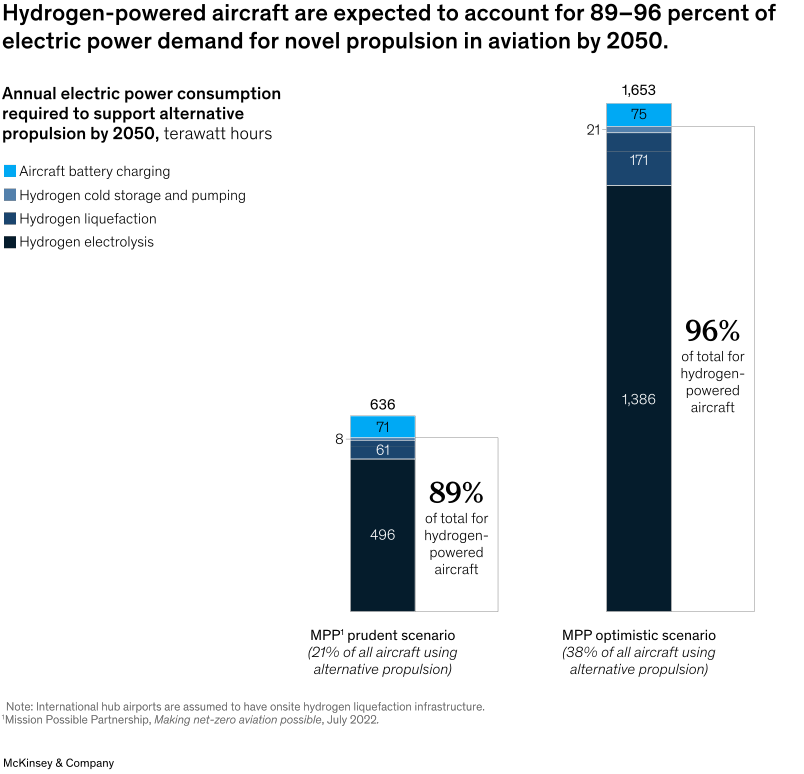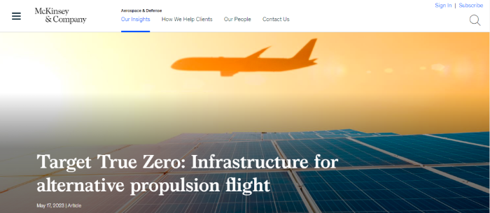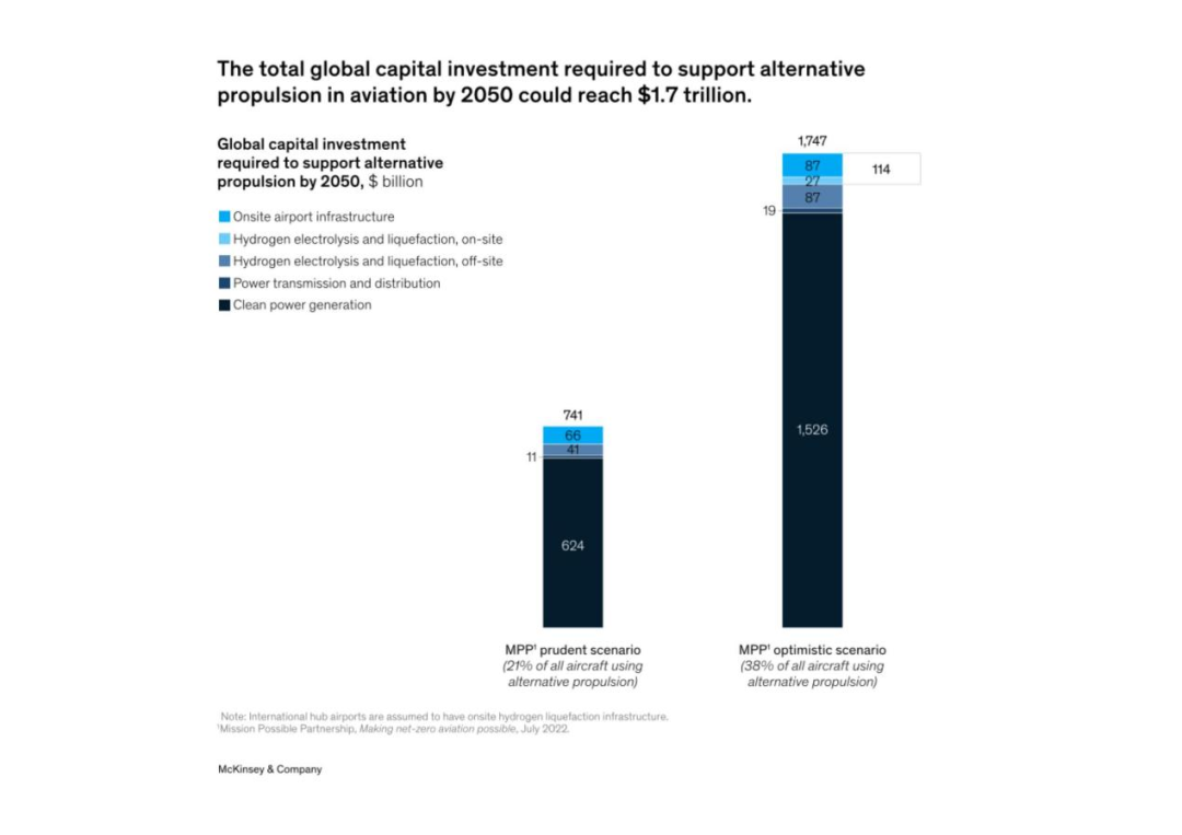 隨著對解決航空業(yè)氣候影響的解決方案的尋求變得更加迫切,人們對例如氫氣、電池電力和混合電力驅(qū)動飛機(jī)等新型推進(jìn)技術(shù)產(chǎn)生了極大的興趣。根據(jù)MPP對航空業(yè)能源的估計,到2050年,電池電力和氫動力飛機(jī)可能占所有飛機(jī)的21%-38%,占該行業(yè)整體能源需求的15%-34%。雖然時間上可能感覺很遙遠(yuǎn),但這一新技術(shù)將在這十年內(nèi)出現(xiàn)。 針對這些基礎(chǔ)設(shè)施的變化,以及機(jī)場和其他利益相關(guān)方如何開始準(zhǔn)備,仍存在不確定性。近期,麥肯錫發(fā)布了《瞄準(zhǔn)低碳:為電池和氫動力飛機(jī)提供基礎(chǔ)設(shè)施》的報告,旨在幫助人們了解影響新型推進(jìn)器的一些關(guān)鍵考慮因素。