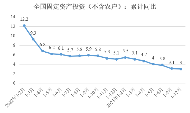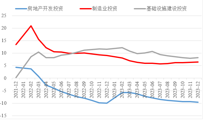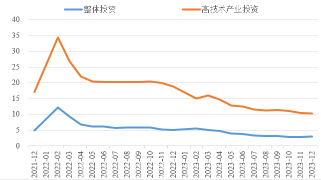 2023年,面對世界經(jīng)濟復蘇乏力、國內(nèi)自然災害頻發(fā)、改革發(fā)展穩(wěn)定任務艱巨等多重挑戰(zhàn),我國經(jīng)濟回升向好,經(jīng)濟轉型升級深入推進。投資對優(yōu)化供給結構的關鍵作用更加凸顯,制造業(yè)投資持續(xù)向好,高技術產(chǎn)業(yè)投資占比穩(wěn)步提高。同時,房地產(chǎn)投資仍未見底、民營經(jīng)濟發(fā)展面臨較大壓力、地方政府債務擴展及外溢風險等突出問題制約投資持續(xù)穩(wěn)定增長。做好2024年投資促進工作,需積極擴大有效益的投資,多舉措激發(fā)民間投資內(nèi)生動力,全力穩(wěn)定房地產(chǎn)投資預期,適度增加地方政府專項債券規(guī)模,加大重點領域補短板投資。 一、2023年整體投資增速有所放緩 2023年,我國固定資產(chǎn)投資(不含農(nóng)戶)同比增長3%,增速較上年下降2.1個百分點,較前三季度、上半年、一季度分別下降0.1個、0.8個、2.1個百分點,固定資產(chǎn)投資增速逐季放緩。1—11月,建安工程、設備工器具購置、其他費用分別增長2.1%、6.7%、3.1%,建安工程投資增速明顯低于設備工器具購置投資增速,說明房屋、建筑物和設備裝置安裝等投資的活躍程度有所下降,體現(xiàn)技術水平的設備工器具投入增長加快。 圖1 全國固定資產(chǎn)投資增速(%) 數(shù)據(jù)來源:國家統(tǒng)計局 (一)民間投資動力不足。2023年,新冠疫情防控平穩(wěn)轉段,疫情產(chǎn)生的“疤痕效應”仍待消除,需求收縮、供給沖擊、預期轉弱三重壓力尚在,民營企業(yè)面臨市場競爭加劇、利潤率下降、轉型升級難度增大、融資難融資貴等突出困難。全年民間固定資產(chǎn)投資253544億元,同比下降0.4%,較上年低了1.3個百分點,低于投資整體增速3.4個百分點。截至2023年12月底,我國民間固定資產(chǎn)投資已連續(xù)8個月負增長,民間固定資產(chǎn)投資占比連續(xù)7個月下降,跌至2011年以來的最低點,僅為50.4%,民間投資信心有待進一步提振。 圖2 民間投資增速及占比(%) 數(shù)據(jù)來源:國家統(tǒng)計局,Wind數(shù)據(jù)庫 (二)制造業(yè)投資保持較高韌性,房地產(chǎn)投資持續(xù)低迷。在中央預算內(nèi)投資、地方政府專項債等資金的引導帶動下,基礎設施和制造業(yè)投資支撐作用更加顯著。2023年,中咨公司累計運行項目8421項,其中基礎設施投資與制造業(yè)投資項目占比近8成。我國計劃總投資億元及以上項目投資同比增長9.3%,拉動全部投資增長4.8個百分點,大項目投資帶動作用明顯。2023年,基礎設施投資同比增長8.24%,高于整體投資5.24個百分點,較2019年高了4.91個百分點。其中,鐵路運輸業(yè)投資、水利管理業(yè)投資分別增長25.2%、5.2%。制造業(yè)投資同比增長6.5%,高于整體投資增速3.5個百分點,較2019年高了3.4個百分點。制造業(yè)投資仍保持較高韌性,傳統(tǒng)產(chǎn)業(yè)高端化綠色化智能化轉型加快,電氣機械和器材制造業(yè)、汽車制造業(yè)投資分別增長32.2%、19.4%。 表1 1—12月我國各行業(yè)固定資產(chǎn)投資情況 數(shù)據(jù)來源:國家統(tǒng)計局,Wind數(shù)據(jù)庫 2023年,房地產(chǎn)開發(fā)投資增速持續(xù)放緩,房地產(chǎn)開發(fā)投資、住宅開發(fā)投資分別同比下降9.6%、9.3%。房地產(chǎn)開發(fā)投資占固定資產(chǎn)投資完成額的比重降至22%,較上年下降1.2個百分點,為3年以來最低值。房屋施工面積、房屋新開工面積等先行指標均出現(xiàn)明顯下滑,分別同比下降7.2%、20.4%。1—12月,國房景氣指數(shù)均位于100以下,自4月以來持續(xù)走低。 圖3 三大領域固定資產(chǎn)投資增速(累計同比,%) 數(shù)據(jù)來源:國家統(tǒng)計局,Wind數(shù)據(jù)庫 高技術產(chǎn)業(yè)投資引領帶動作用持續(xù)增強,集成電路、高端芯片、儀器儀表設備等領域關鍵核心技術攻關扎實推進,新能源、人工智能、生物醫(yī)藥等新興產(chǎn)業(yè)發(fā)展加快。2023年我國高技術產(chǎn)業(yè)投資增長10.3%,穩(wěn)投資引領作用持續(xù)顯現(xiàn)。高技術制造業(yè)投資比上年增長9.9%,增速比制造業(yè)投資高3.4個百分點。其中,航空、航天器及設備制造業(yè),計算機及辦公設備制造業(yè),電子及通信設備制造業(yè)投資分別增長18.4%、14.5%、11.1%。高技術服務業(yè)投資比上年增長11.4%,增速比服務業(yè)投資高11個百分點。其中,科技成果轉化服務業(yè)、電子商務服務業(yè)投資分別增長31.8%、29.2%。高技術產(chǎn)業(yè)引資能力不斷增強,1—11月高技術產(chǎn)業(yè)引資3866.5億元人民幣,占全國實際使用外資總額的37.2%,較2022年全年提升1.1個百分點。 圖4 高技術產(chǎn)業(yè)投資增速對比整體投資增速(累計同比,%) 數(shù)據(jù)來源:國家統(tǒng)計局,Wind數(shù)據(jù)庫 (三)東部地區(qū)投資保持較快增長,東北地區(qū)投資延續(xù)負增長。今年以來,中咨公司承接31個省市委托的項目中,東部、中部、西部和東北地區(qū)占比分別為43%、16%、36%、5%。2023年,我國東部地區(qū)投資同比增長4.4%,較全國水平高了1.4個百分點;中部、西部地區(qū)投資增速由負轉正,分別同比增長0.3%、0.1%;東北地區(qū)投資同比下降1.8%,降幅較前三季度有所收窄。 圖5 分地區(qū)固定資產(chǎn)投資增速(累計同比,%) 數(shù)據(jù)來源:國家統(tǒng)計局,Wind數(shù)據(jù)庫 2023年1—11月,31個省份中有15個省投資增速高于全國水平,其中西藏