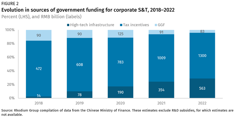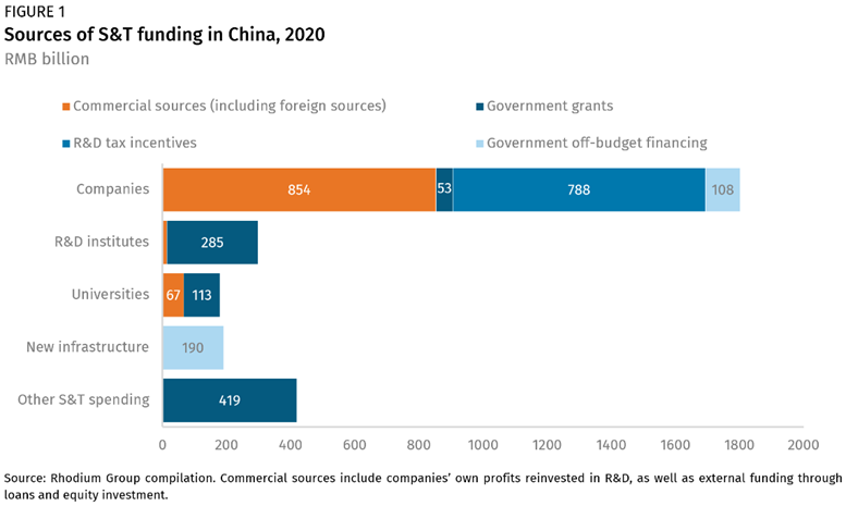 摘要 2023年12月15日,美國商業(yè)咨詢機構(gòu)榮鼎集團發(fā)布其中國項目團隊的副總監(jiān)、聯(lián)席董事卡米爾·布勒諾瓦(Camille Boullenois)等人撰寫的《經(jīng)濟放緩下中國科技支出正在分散》的研究報告,指出中國經(jīng)濟增長放緩可能會抑制創(chuàng)新研發(fā)投入。報告評估了中國經(jīng)濟增長放緩和財政環(huán)境收緊對每個資金來源的影響,認(rèn)為資源稀缺可能會迫使政府更具戰(zhàn)略性地將資金引導(dǎo)到與國家安全相關(guān)的技術(shù)和公司這一更狹窄的核心。報告認(rèn)為,總體上較低的科技支出并不一定會阻礙中國在這些戰(zhàn)略領(lǐng)域發(fā)展成為全球領(lǐng)導(dǎo)者的能力。報告也警示,經(jīng)濟增長放緩或減緩中國發(fā)展一個全面的創(chuàng)新生態(tài)系統(tǒng),進而影響技術(shù)之間的溢出效應(yīng),放緩下一代創(chuàng)新的出現(xiàn),并影響到人才和資源的有效調(diào)動。 近年來,以七國集團(G7)國家為代表的美西方國家加強貿(mào)易和投資管制,以遏制中國高科技部門的增長,并限制中國產(chǎn)業(yè)政策對其行業(yè)的溢出效應(yīng)。面對日益增長的地緣政治逆風(fēng),中國政府加倍努力,成為自立自強的全球科技強國。 但中國經(jīng)濟增長放緩可能會抑制創(chuàng)新強國進程。歷史表明,經(jīng)濟增長放緩?fù)鶗?chuàng)新資金和能力產(chǎn)生負(fù)面影響。報告詳細(xì)介紹了中國創(chuàng)新生態(tài)系統(tǒng)的主要資金來源,并評估了中國經(jīng)濟增長放緩和財政環(huán)境收緊對每個資金來源的影響。資源稀缺可能會迫使政府更具戰(zhàn)略性地將資金引導(dǎo)到與國家安全相關(guān)的技術(shù)和公司這一更狹窄的核心。總體上較低的科技支出并不一定會阻礙中國在這些戰(zhàn)略領(lǐng)域發(fā)展成為全球領(lǐng)導(dǎo)者的能力。然而,它可能會減緩中國發(fā)展一個全面的創(chuàng)新生態(tài)系統(tǒng),這種生態(tài)系統(tǒng)可以促進技術(shù)之間的溢出效應(yīng),促進下一代創(chuàng)新的出現(xiàn),并保持人才和資源的調(diào)動。 PART/1 中國經(jīng)濟放緩對科技資金來源的影響 與世界其他地方一樣,中國創(chuàng)新生態(tài)系統(tǒng)的資金來自各種商業(yè)和公共來源,并流向廣泛的公共和私人科技行為者。然而,與其他大型和技術(shù)發(fā)達(dá)的經(jīng)濟體相比,政府相關(guān)來源在中國發(fā)揮著主導(dǎo)作用,約占流入中國科技生態(tài)系統(tǒng)的所有資金的60%(見圖1)。 由于政府相關(guān)資金承擔(dān)了中國科技體系的大部分融資,因此地方財政狀況會帶來很高的破壞風(fēng)險。2022年,地方政府約占政府科技支出總額的三分之二。科技的其他資金來源,包括從再投資利潤到股權(quán)和貸款的商業(yè)融資渠道,也將面臨經(jīng)濟增長放緩的壓力。 PART/2 對大學(xué)和研究機構(gòu)的資助 中國的大學(xué)和研發(fā)機構(gòu)最直接地受到中國經(jīng)濟放緩和地方政府財政困境的影響。這些機構(gòu)在中國的創(chuàng)新生態(tài)系統(tǒng)中發(fā)揮著至關(guān)重要的作用,占中國基礎(chǔ)研究支出的85%,并且主要由政府資助支持。2022年,他們獲得了約438億元人民幣(65億美元)的研發(fā)活動預(yù)算支出,約占其整體科技預(yù)算的70%,比2018年增長了34%。支出主要由地方政府承擔(dān),而且越來越多地由地方政府承擔(dān),2018 年地方政府占政府對大學(xué)和研究機構(gòu)支持的 68%。 未來幾年,地方政府的預(yù)算資金可能會面臨越來越大的壓力。地方政府收入占GDP的比重一直在下降,從2015年的12%左右下降到2022年的9%。稅收收入占地方政府一般預(yù)算的70%,2020年和2022年的稅收收入絕對值也有所下降,原因是新冠肺炎疫情大流行期間給予了稅收減免,以及企業(yè)部門放緩導(dǎo)致企業(yè)所得稅和增值稅收入減少。除此之外,許多地方政府在疫情前和疫情期間都面臨著越來越沉重的債務(wù)償還負(fù)擔(dān)。 盡管收入下降,但地方政府仍被要求在一系列政策優(yōu)先事項上增加支出,尤其是在人口老齡化加速退休并需要更多公共醫(yī)療和社會系統(tǒng)的情況下。根據(jù)官方預(yù)算,這已經(jīng)影響了政府對科技的直接支出,在過去十年中,科技支出的增長速度慢于衛(wèi)生和社會保障支出。 科技支出能力的下降將使中國3000所省級大學(xué)以及地方政府資助的研究所、實驗室和科研項目面臨風(fēng)險。地方政府財政緊縮對各省的影響不盡相同。中國約有一半的地方政府直接科技撥款來自五個發(fā)達(dá)省份,這些省份的財政通常較為穩(wěn)定。但即使是這些省份,也難免受到財政緊縮影響。2022年,這些省份的平均一般預(yù)算收入下降了4%,而所有省份的平均降幅為8%。 PART/3 政府資助鼓勵企業(yè)研發(fā) 過去十年間,政府還通過補貼和稅收優(yōu)惠,以及股權(quán)融資和高科技基礎(chǔ)設(shè)施等間接手段,加大了對企業(yè)研發(fā)的支持力度(圖 2)。所有資金來源都實現(xiàn)了快速增長,但僅稅收返還一項在2018年至2022年間的年均增長率就高達(dá) 28.8%,成為政府為企業(yè)研發(fā)提供資金的最大來源,到2022年將達(dá)到1.3萬億元人民幣(1933億美元)。 然而,就像對大學(xué)和研究機構(gòu)的直接科技支持一樣,稅收優(yōu)惠大多來自地方政府