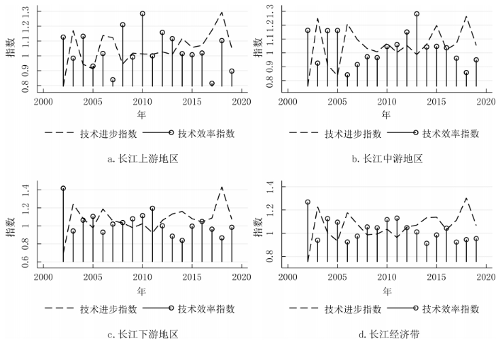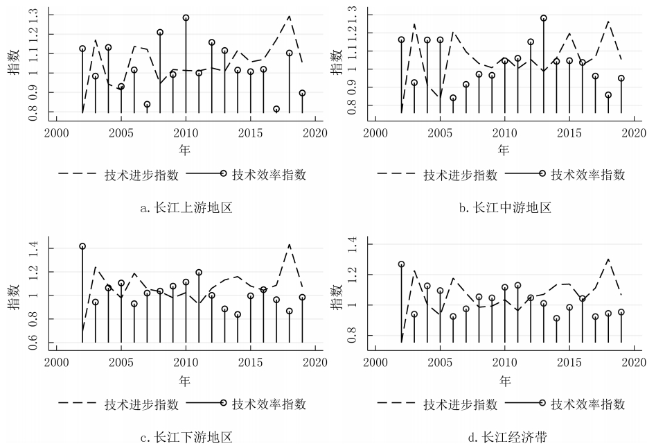 摘要:正確認(rèn)識(shí)和研判長(zhǎng)江經(jīng)濟(jì)帶科技創(chuàng)新效率的變化特征有助于更好地發(fā)揮科技創(chuàng)新對(duì)經(jīng)濟(jì)高質(zhì)量發(fā)展的支撐作用。基于2002-2019年長(zhǎng)江經(jīng)濟(jì)帶沿線11省份的面板數(shù)據(jù),利用GS-SBM模型測(cè)度了長(zhǎng)江經(jīng)濟(jì)帶的科技創(chuàng)新效率,分別使用Malmquist指數(shù)、Dagum基尼系數(shù)以及 Sigma收斂、Beta絕對(duì)(條件)收斂考察了長(zhǎng)江經(jīng)濟(jì)帶科技創(chuàng)新效率的演變、空間差距和收斂性。研究發(fā)現(xiàn):長(zhǎng)江經(jīng)濟(jì)帶及其上、中、下游地區(qū)科技創(chuàng)新效率整體上而言保持提升趨勢(shì),且存在較大空間差距,超變密度對(duì)總體差距的貢獻(xiàn)最大;長(zhǎng)江經(jīng)濟(jì)帶及其上、中、下游地區(qū)科技創(chuàng)新效率幾乎不存在Sigma收斂和Beta絕對(duì)(條件)收斂;長(zhǎng)江經(jīng)濟(jì)帶發(fā)展戰(zhàn)略實(shí)施之后,科技創(chuàng)新效率提高得更加明顯,并從技術(shù)進(jìn)步與技術(shù)效率的雙重驅(qū)動(dòng)轉(zhuǎn)變?yōu)楦嗟匾揽考夹g(shù)進(jìn)步,科技創(chuàng)新效率的擴(kuò)散狀態(tài)更強(qiáng)。基于此,研究認(rèn)為要科學(xué)辯證地看待區(qū)域科技創(chuàng)新效率的差距,發(fā)揮長(zhǎng)江經(jīng)濟(jì)帶發(fā)展戰(zhàn)略和科教興國(guó)戰(zhàn)略在提升和平衡科技創(chuàng)新效率中的積極作用。 關(guān)鍵詞:長(zhǎng)江經(jīng)濟(jì)帶;科技創(chuàng)新效率;時(shí)空格局;收斂性 科技創(chuàng)新是長(zhǎng)江經(jīng)濟(jì)帶建設(shè)現(xiàn)代經(jīng)濟(jì)體系、實(shí)現(xiàn)高質(zhì)量發(fā)展的戰(zhàn)略支撐,是推動(dòng)中國(guó)式現(xiàn)代化的第一力量。經(jīng)過多年的對(duì)外開放,長(zhǎng)江經(jīng)濟(jì)帶已經(jīng)融入了全球分工體系,但是大量本土企業(yè)被鎖定在產(chǎn)業(yè)鏈或者產(chǎn)品價(jià)值鏈的中低端,必須依靠科技創(chuàng)新才能實(shí)現(xiàn)在全球價(jià)值鏈上的攀升。同時(shí),雖然長(zhǎng)江經(jīng)濟(jì)帶是我國(guó)重要的現(xiàn)代工業(yè)集聚地,工業(yè)基礎(chǔ)扎實(shí)、規(guī)模龐大,但是關(guān)鍵核心技術(shù)仍然缺乏,尤其是在以美國(guó)為首的西方國(guó)家對(duì)華遏制和挑戰(zhàn)的情況下,需要以科技創(chuàng)新來解決“卡脖子”問題,加快實(shí)現(xiàn)高水平科技自立自強(qiáng)。此外,為了加快經(jīng)濟(jì)增長(zhǎng),長(zhǎng)江經(jīng)濟(jì)帶沿線多個(gè)省市推進(jìn)工業(yè)化和城鎮(zhèn)化,忽略了人與自然的和諧共生,導(dǎo)致長(zhǎng)江沿線部分地區(qū)環(huán)境污染問題突出,生態(tài)功能退化,碳排放持續(xù)增加。基于此,無論是貫徹落實(shí)習(xí)近平總書記“共抓大保護(hù)、不搞大開發(fā)”的指示精神,還是如期或者率先實(shí)現(xiàn)碳達(dá)峰碳中和目標(biāo),都要求長(zhǎng)江經(jīng)濟(jì)帶沿線省市轉(zhuǎn)變發(fā)展模式,走生態(tài)優(yōu)先、綠色低碳發(fā)展之路,發(fā)揮科技創(chuàng)新在經(jīng)濟(jì)綠色轉(zhuǎn)型中的支撐作用。 由于科技創(chuàng)新本質(zhì)上來講是一種知識(shí)生產(chǎn)過程,所以就存在科技創(chuàng)新成果的產(chǎn)出與科技創(chuàng)新資源和要素的投入比問題,即科技創(chuàng)新效率的高低,這種高低變化分別反映在時(shí)間和空間上差距:一是在某一區(qū)域內(nèi)科技創(chuàng)新資源和要素投入的持續(xù)增長(zhǎng),并沒有帶來相應(yīng)的科技創(chuàng)新產(chǎn)出數(shù)量增長(zhǎng)或者質(zhì)量的提升;二是將同樣的科技創(chuàng)新資源和要素投入到不同區(qū)域,其科技創(chuàng)新產(chǎn)出數(shù)量或者質(zhì)量顯著不同。這兩個(gè)維度分別刻畫了區(qū)域內(nèi)與區(qū)域間科技創(chuàng)新效率的差別,不僅影響了科技創(chuàng)新資源和要素的配置,而且也影響了科技創(chuàng)新對(duì)經(jīng)濟(jì)發(fā)展的貢獻(xiàn)程度,成為區(qū)域發(fā)展不平衡的底層因素之一,給區(qū)域協(xié)調(diào)發(fā)展帶來了較大的挑戰(zhàn)。除此之外,我國(guó)依然是世界上最大的發(fā)展中國(guó)家,科技創(chuàng)新資源較歐美發(fā)達(dá)國(guó)家而言則相對(duì)稀缺,這就需要通過提高科技創(chuàng)新效率來實(shí)現(xiàn)科技創(chuàng)新資源的最大化利用。 為了更加充分和有效地利用長(zhǎng)江經(jīng)濟(jì)帶科技創(chuàng)新資源,促進(jìn)長(zhǎng)江經(jīng)濟(jì)帶經(jīng)濟(jì)高質(zhì)量發(fā)展,就必須正視科技創(chuàng)新效率在時(shí)間和空間上的演變,科學(xué)認(rèn)識(shí)科技創(chuàng)新效率向高水平收斂的機(jī)制,因此,不僅要考察長(zhǎng)江經(jīng)濟(jì)帶科技創(chuàng)新效率的動(dòng)態(tài)變化規(guī)律,還需要充分考慮科技創(chuàng)新效率的區(qū)域不平衡問題,即其上、中、下游地區(qū)之間以及各自內(nèi)部科技創(chuàng)新效率的差距變化。本文首先基于數(shù)據(jù)包絡(luò)方法測(cè)度了長(zhǎng)江經(jīng)濟(jì)帶及其上、中、下游地區(qū)的科技創(chuàng)新效率,分解了導(dǎo)致科技創(chuàng)新效率變化的驅(qū)動(dòng)因素,然后利用dagum基尼系數(shù)考察了長(zhǎng)江經(jīng)濟(jì)帶及其上、中、下游地區(qū)的
