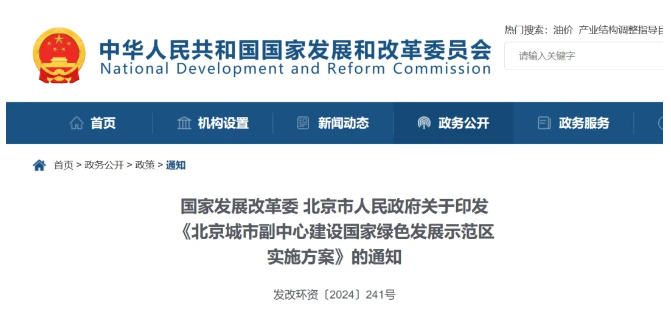 展首都綠色之翼 創(chuàng)全國(guó)示范之先 高質(zhì)量建設(shè)國(guó)家綠色發(fā)展示范區(qū) ——《北京城市副中心建設(shè)國(guó)家綠色發(fā)展示范區(qū)實(shí)施方案》解讀 張英健 木其堅(jiān) 近日,經(jīng)國(guó)務(wù)院同意,國(guó)家發(fā)展改革委、北京市人民政府聯(lián)合印發(fā)《北京城市副中心建設(shè)國(guó)家綠色發(fā)展示范區(qū)實(shí)施方案》(發(fā)改環(huán)資〔2024〕241號(hào),以下簡(jiǎn)稱《實(shí)施方案》),明確了北京城市副中心綠色高質(zhì)量發(fā)展、打造人與自然和諧共生樣板的工作路徑,為北京城市副中心有序承接中心城區(qū)非首都功能疏解、推進(jìn)首都城市功能重組和布局優(yōu)化,建設(shè)和諧、宜居、美麗的綠色發(fā)展高地繪制了總體藍(lán)圖,對(duì)于推動(dòng)北京“新兩翼”建設(shè)取得更大突破,促進(jìn)京津冀協(xié)同發(fā)展具有重要而深遠(yuǎn)的意義。 1、踐行習(xí)近平生態(tài)文明思想是北京城市副中心建設(shè)的根本遵循 規(guī)劃建設(shè)北京城市副中心,與雄安新區(qū)形成北京的“新兩翼”,是以習(xí)近平同志為核心的黨中央作出的重大決策部署,是千年大計(jì)、國(guó)家大事。早在2016年北京城市副中心研究部署規(guī)劃階段,習(xí)近平總書記就強(qiáng)調(diào),北京城市副中心建設(shè)要牢固樹立并貫徹落實(shí)創(chuàng)新、協(xié)調(diào)、綠色、開放、共享的發(fā)展理念,構(gòu)建藍(lán)綠交織、清新明亮、水城共融的生態(tài)城市布局,著力打造國(guó)際一流和諧宜居之都示范區(qū),建成綠色城市、森林城市、海綿城市、智慧城市。2021年8月,國(guó)務(wù)院印發(fā)《關(guān)于支持北京城市副中心高質(zhì)量發(fā)展的意見(jiàn)》,明確提出在北京城市副中心建設(shè)國(guó)家綠色發(fā)展示范區(qū),堅(jiān)持將綠色發(fā)展理念融入經(jīng)濟(jì)社會(huì)發(fā)展全過(guò)程。近年來(lái),京津冀3省市切實(shí)履行主體責(zé)任,中央有關(guān)部門和單位大力支持配合,疏解北京非首都功能初見(jiàn)成效,北京城市副中心高質(zhì)量發(fā)展步伐加快,“軌道上的京津冀”加速形成,北京城市副中心美麗宜居水平大幅提升,科技創(chuàng)新和產(chǎn)業(yè)融合發(fā)展水平持續(xù)提升,人民群眾獲得感顯著增強(qiáng)。實(shí)踐證明,黨中央關(guān)于北京城市副中心的安排部署,特別是堅(jiān)持將綠色發(fā)展作為城市發(fā)展底色的決策部署科學(xué)合理、順應(yīng)民心,符合我國(guó)新時(shí)代高質(zhì)量發(fā)展需要。 北京城市副中心肩負(fù)著有序承接中心城區(qū)非首都功能疏解、推進(jìn)首都城市功能重組和布局優(yōu)化、探索人口經(jīng)濟(jì)密集地區(qū)優(yōu)化開發(fā)模式的艱巨任務(wù)。與雄安平地建新城不同,北京城市副中心本身已有城市建設(shè)的基礎(chǔ),如何在既有基礎(chǔ)上脫胎換骨、綠色升級(jí),打造一個(gè)不一樣的和諧宜居之城,關(guān)鍵是必須牢牢把握住習(xí)近平生態(tài)文明思想這個(gè)最核心的思想武器。《實(shí)施方案》認(rèn)真貫徹黨中央、國(guó)務(wù)院決策部署,時(shí)時(shí)處處踐行綠水青山就是金山銀山理念,牢固樹立節(jié)約集約循環(huán)利用的資源觀,以實(shí)現(xiàn)碳達(dá)峰碳中和目標(biāo)為引領(lǐng),將綠色發(fā)展理念融入北京城市副中心經(jīng)濟(jì)社會(huì)發(fā)展各領(lǐng)域全過(guò)程,協(xié)同推進(jìn)降碳、減污、擴(kuò)綠、增長(zhǎng),擘畫了北京城市副中心的發(fā)展藍(lán)圖,描繪了青山常在、綠水長(zhǎng)流、空氣常新的美麗畫卷,印發(fā)后必將成為北京城市副中心綠色高質(zhì)量發(fā)展的重要指南。 2、做好北京城市副中心綠色發(fā)展六篇示范文章 北京城市副中心建設(shè)國(guó)家綠色發(fā)展示范區(qū),不是戴帽子、做盆景,是要真正解題破題,探索既有建成區(qū)綠色低碳升級(jí)的可行路徑,從而為首都乃至全國(guó)各個(gè)地區(qū)提供可推廣、可復(fù)制的經(jīng)驗(yàn)。《實(shí)施方案》明確,將聚焦建筑、交通、產(chǎn)業(yè)三大關(guān)鍵領(lǐng)域和能源、生態(tài)、文化三大重點(diǎn)支撐開展綠色示范,統(tǒng)籌產(chǎn)業(yè)結(jié)構(gòu)調(diào)整、污染治理、生態(tài)保護(hù)、應(yīng)對(duì)氣候變化,協(xié)同推進(jìn)降碳、減污、擴(kuò)綠、增長(zhǎng),推動(dòng)北京城市副中心經(jīng)濟(jì)社會(huì)各方面和全過(guò)程綠色低碳發(fā)展。綠色建筑示范方面,統(tǒng)籌考慮新建建筑建造、既有建筑改造和智能建造應(yīng)用,推進(jìn)實(shí)施工程建設(shè)全過(guò)程綠色建造,大力推行綠色建筑和超低能耗建筑,加大智能建造應(yīng)用力度,推動(dòng)建筑領(lǐng)域全過(guò)程節(jié)約資源和減少碳排放,實(shí)現(xiàn)建筑領(lǐng)域綠色化、品質(zhì)化發(fā)展和數(shù)字化、智能化升級(jí)。綠色交通示范方面,建設(shè)高效綠色的軌道交通,完善生態(tài)友好的道路交通,推進(jìn)綠色智能交通管理,推動(dòng)區(qū)域綠色低碳交通一體化,構(gòu)建承載輻射功能突出、便捷暢達(dá)、人本生態(tài)的現(xiàn)代綜合交通體系,為北京城市副中心與河北省三河市、大廠回族自治縣、香河縣一體化高質(zhì)量發(f