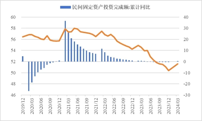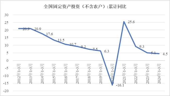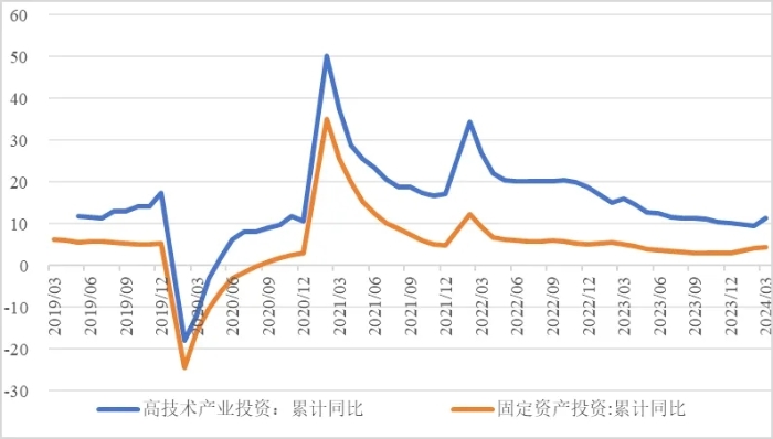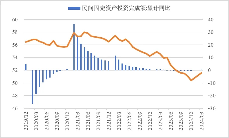 今年以來,我國經(jīng)濟發(fā)展質(zhì)效穩(wěn)步提升,投資結(jié)構(gòu)不斷優(yōu)化,投資對發(fā)展的關(guān)鍵作用持續(xù)發(fā)揮。但受房地產(chǎn)投資低迷等因素影響,整體投資增速較上年同期有所放緩,民間投資活力仍待激發(fā)。下階段,需適時推進及用好中央預(yù)算內(nèi)資金、萬億增發(fā)國債、地方政府專項債、超長期特別國債等政策工具,大規(guī)模推動制造業(yè)設(shè)備更新,持續(xù)激發(fā)民間投資活力,多措并舉消化存量房產(chǎn),積極擴大有效益的投資,促進經(jīng)濟平穩(wěn)健康發(fā)展。 一、一季度整體投資增速保持平穩(wěn) 2024年一季度,我國固定資產(chǎn)投資(不含農(nóng)戶)同比增長4.5%,增速較上年同期下降0.6個百分點。建安工程、設(shè)備工器具購置分別增長4.6%、17.6%,設(shè)備工器具購置投資增速明顯高于建安工程投資增速,較2023年全年提高11個百分點,說明技術(shù)改造升級和設(shè)備更新市場潛力巨大,體現(xiàn)技術(shù)水平的設(shè)備工器具投入增長加快。 圖1 全國固定資產(chǎn)投資增速(%) 數(shù)據(jù)來源:國家統(tǒng)計局,Wind數(shù)據(jù)庫 (一)在資金支持和政策推動下,基礎(chǔ)設(shè)施投資支撐有力。今年2月底前,上年四季度增發(fā)的1萬億國債已全部下達,各地加快增發(fā)國債項目的開工建設(shè),基礎(chǔ)設(shè)施投資穩(wěn)定增長。一季度基礎(chǔ)設(shè)施投資同比增長6.5%,較1—2月加快0.2個百分點,拉動全部投資增長1.4個百分點。其中,完成水利基礎(chǔ)設(shè)施投資1933億元,同比增長4.4%,為歷史同期最多;完成交通固定資產(chǎn)投資7205億元,同比增長13.3%;截至2月底全國能源重點項目完成投資約2680億元,同比增長17.2%。新型基礎(chǔ)設(shè)施建設(shè)穩(wěn)步發(fā)展,“雙千兆”網(wǎng)絡(luò)部署有序推進,累計建成5G基站364.7萬個,5G用戶普及率突破60%,千兆城市達到207個,梯次算力基礎(chǔ)設(shè)施架構(gòu)加快構(gòu)建。 表1 1—3月我國各行業(yè)固定資產(chǎn)投資情況 數(shù)據(jù)來源:國家統(tǒng)計局,Wind數(shù)據(jù)庫 (二)高技術(shù)產(chǎn)業(yè)投資繼續(xù)發(fā)揮引領(lǐng)帶動作用。一季度,制造業(yè)投資同比增長9.9%,拉動全部投資增長2.4個百分點。41個工業(yè)大類行業(yè)中,電子、汽車等37個行業(yè)增加值保持增長,增長面較去年擴大22個百分點。工業(yè)領(lǐng)域大規(guī)模設(shè)備更新和消費品以舊換新政策加快釋放市場空間,汽車銷量同比增長10.6%,家電類商品消費同比增長5.8%。3月,制造業(yè)采購經(jīng)理指數(shù)(PMI)回升到景氣區(qū)間,達到了50.8%。 圖2 三大領(lǐng)域固定資產(chǎn)投資增速(累計同比,%) 數(shù)據(jù)來源:國家統(tǒng)計局,Wind數(shù)據(jù)庫 一季度高技術(shù)產(chǎn)業(yè)投資同比增長11.4%,其中高技術(shù)制造業(yè)和高技術(shù)服務(wù)業(yè)投資分別增長10.8%、12.7%。新興產(chǎn)業(yè)加快發(fā)展,3D打印設(shè)備、服務(wù)機器人產(chǎn)量分別增長40.6%、26.7%;創(chuàng)新成果不斷涌現(xiàn),300兆瓦級F級重型燃氣輪機首臺樣機總裝下線;人工智能與制造業(yè)深度融合,全國已建成近萬家數(shù)字化車間和智能工廠,已培育421家國家級智能制造示范工廠;生產(chǎn)性服務(wù)業(yè)發(fā)展提速,信息傳輸、軟件和信息技術(shù)服務(wù)業(yè)增加值增長13.7%。新興產(chǎn)業(yè)典型產(chǎn)品呈現(xiàn)較快增長勢頭,一季度太陽能電池增長20.1%,與光伏相關(guān)的多晶硅、單晶硅增速超過50%,新能源汽車產(chǎn)銷分別增長28.2%、31.8%。 圖3 高技術(shù)產(chǎn)業(yè)投資增速對比整體投資增速 (累計同比,%) 數(shù)據(jù)來源:國家統(tǒng)計局,Wind數(shù)據(jù)庫 (三)房地產(chǎn)投資仍然低迷,支持房地產(chǎn)穩(wěn)定發(fā)展政策效果逐漸顯現(xiàn)。一季度,全國房地產(chǎn)開發(fā)投資22082億元,同比下降9.5%。其中,住宅投資16585億元,下降10.5%。房地產(chǎn)開發(fā)投資占固定資產(chǎn)投資完成額的比重降至22.07%,較上年同期下降2.14個百分點。房屋施工面積、房屋新開工面積等先行指標均出現(xiàn)明顯下滑,分別同比下降11.1%、27.8%。3月,國房景氣指數(shù)為92.07,連續(xù)第四個月下降。一線城市二手住宅銷售價格環(huán)比下降0.7%,二、三線城市二手住宅銷售價格均環(huán)比下降0.5%,國內(nèi)大中城市房價仍呈持續(xù)下降趨勢。 今年以來,各地加大了支持房地產(chǎn)穩(wěn)定發(fā)展的政策力度,包括降低貸款利率、放松限購、住房“以舊換新”等,一季度我國新建商品房銷售面積和銷售額比1—2月降幅分別收窄了1.1、1.7個百分點。去年中央金融工作會議后,中央及各地加大了保障性住房建設(shè)、“平急兩用”公共基礎(chǔ)設(shè)施建設(shè)、城中村改造等“三大工程”推進力度,積極構(gòu)建房地產(chǎn)新發(fā)展模式。國家統(tǒng)計局數(shù)據(jù)顯示,“三大工程”拉動房地產(chǎn)投資0.6個百分點,政策舉措成效顯著。 (四)區(qū)域投資形勢整體向好,東北地區(qū)投資增速領(lǐng)先。2024年一季度,我國東北地區(qū)一批重大項目加快落地,投資大幅增長9.6%,較全國水平高了5.1個百分點;京津冀、長三角、粵港澳大灣區(qū)等動力源地區(qū)經(jīng)濟較快增長,東部地區(qū)投資同比增長5.7%,較全國水平高了1.2個百