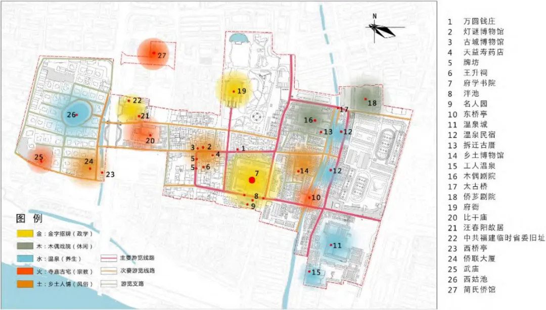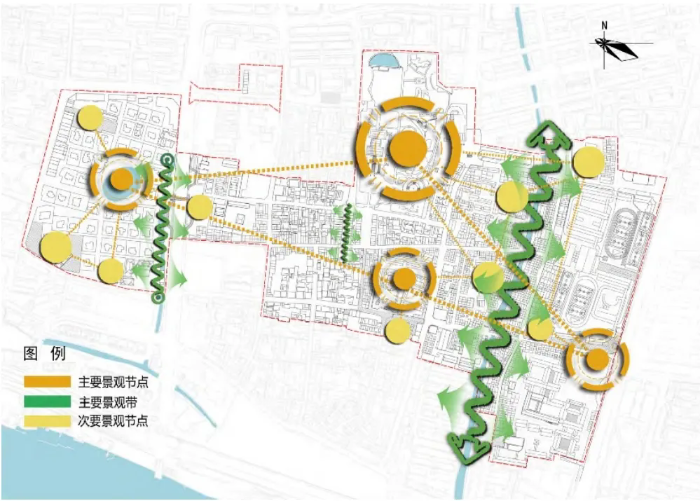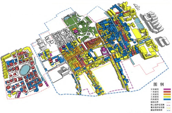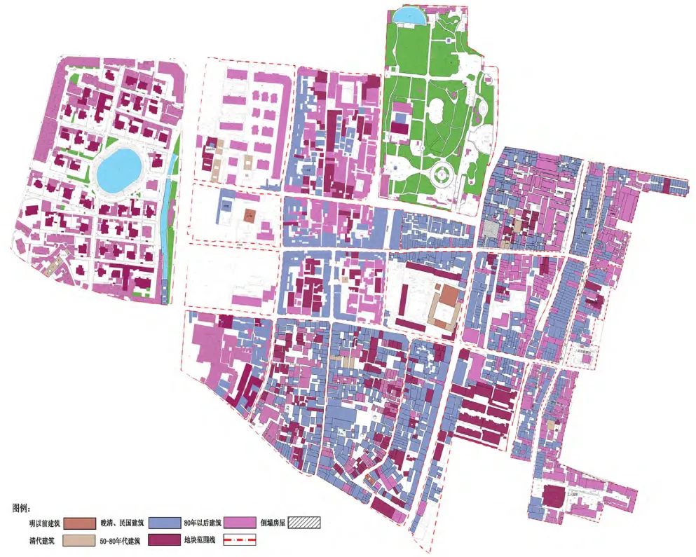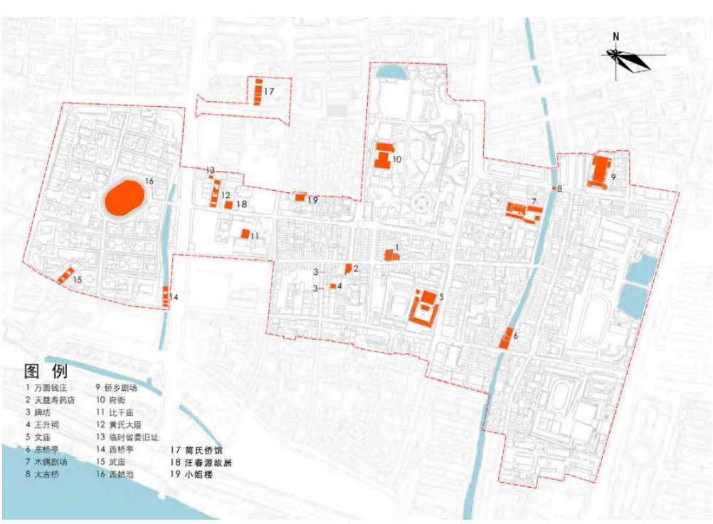 文化傳承視角下的漳州古城保護(hù)與更新策略研究 張健 摘要:歷史古城承載著中華民族的血脈和記憶,具有極大的保護(hù)價(jià)值。如何在保持古城風(fēng)貌的同時(shí)進(jìn)行合理更新改造,是一項(xiàng)值得深究的重要課題。本文基于文化傳承的視角,以漳州古城為例,分別從建筑風(fēng)貌、文化底蘊(yùn)、公共空間、街巷肌理、生活氣息五個(gè)方面分析了漳州古城的文化特色及保護(hù)現(xiàn)狀,并以突出漳州古城“閩南風(fēng)、漳州味、宋河韻、老街情、慢生活”的地域文化特征為目標(biāo),分別提出打造閩南名片、延續(xù)文化脈絡(luò)、重現(xiàn)宋河古韻、恢復(fù)街巷肌理、保留生活氣息的古城保護(hù)與更新策略。 關(guān)鍵詞:古城;保護(hù)更新;文化傳承;漳州 一、研究背景 近年來(lái),我國(guó)一直處于城鎮(zhèn)化飛速發(fā)展的階段,城市經(jīng)濟(jì)水平逐漸提高。但同時(shí),快速城鎮(zhèn)化導(dǎo)致城市呈現(xiàn)“粗放式”發(fā)展的局面[1],使得城市無(wú)秩序地蔓延和擴(kuò)張,從而導(dǎo)致了一系列復(fù)雜的城市問(wèn)題。長(zhǎng)久以來(lái),城市的發(fā)展過(guò)于追求經(jīng)濟(jì)效益和價(jià)值,而忽視了對(duì)于空間品質(zhì)提升的需求,這也就導(dǎo)致了城市內(nèi)部很多特色區(qū)域、歷史地段因違背了經(jīng)濟(jì)利益而被侵蝕、被破壞,甚至逐漸走向衰亡,城市失去了原有的文脈和特色。 歷史文化街區(qū)作為一個(gè)城市聯(lián)結(jié)歷史與未來(lái)的紐帶,承載著中華民族刻在基因里的傳承和血脈,從某種程度上來(lái)說(shuō),是一個(gè)城市生命的延續(xù)。歷史文化街區(qū)不應(yīng)該作為一個(gè) 城市發(fā)展的犧牲品被湮沒(méi)在歷史長(zhǎng)河中,而應(yīng)該作為一個(gè)城市對(duì)外展示的名片被人們所記住。歷史風(fēng)貌彌足珍貴、歷史街區(qū)不可再生[2],若想要延續(xù)歷史文化街區(qū)的精神和記憶,必須采取適宜的手段對(duì)其進(jìn)行適度開(kāi)發(fā)與更新,以在發(fā)展與保護(hù)之間求得平衡[3],實(shí)現(xiàn)“在保護(hù)中發(fā)展,在發(fā)展中保護(hù)”[4]。歷史文化街區(qū)傳承的文化是其最重要的底色,對(duì)于歷史文化街區(qū)的保護(hù)可以考慮活化更新的方式,在保證文化記憶傳承的同時(shí)適當(dāng)注入新鮮血液,在最大限度地保存建筑風(fēng)貌、保護(hù)街巷肌理的同時(shí),重塑場(chǎng)所精神,實(shí)現(xiàn)真正的可持續(xù)發(fā)展。 本文以位于歷史文化名城漳州市最重要的歷史文化街區(qū)漳州古城為研究對(duì)象,在分析其文化特色及保護(hù)現(xiàn)狀的基礎(chǔ)上,從文化傳承的角度探討了漳州古城保護(hù)與更新的策略。 二、研究區(qū)域概況 漳州古城位于“海濱鄒魯”之一的福建省漳州市中心區(qū),是漳州市最具保護(hù)價(jià)值的片區(qū)。漳州古城始建于唐垂拱二年[5],擁有一千三百余年的悠久歷史,有“唐宋古城、明清街區(qū)、民國(guó)風(fēng)貌、閩南韻味、僑臺(tái)同輝”之美傳[6]。漳州古城歷經(jīng)滄桑,始終保留著其獨(dú)特、鮮明的人文氣息和民俗風(fēng)情,文化旅游資源極為豐富。 本文基于文化傳承的視角,探討如何在最大限度保留漳州古城文化風(fēng)貌的同時(shí)活化古城、留住鄉(xiāng)愁,突出漳州古城“閩南風(fēng)、漳州味、宋河韻、老街情、慢生活”的地域文化特征,提出最適宜漳州古城的保護(hù)更新發(fā)展策略,實(shí)現(xiàn)漳州古城的活力重構(gòu)和有機(jī)更新。 三、漳州古城文化特色及保護(hù)現(xiàn)狀 漳州古城建筑風(fēng)貌完好、文化底蘊(yùn)深厚、公共空間多樣、街巷肌理獨(dú)特、生活氣息濃厚,既保留獨(dú)特的歷史人文底蘊(yùn),又延續(xù)著傳統(tǒng)生活方式,文化特色鮮明,具有極高的保護(hù)價(jià)值。 (一)建筑風(fēng)貌完好 漳州古城文物古跡眾多,核心保護(hù)區(qū)建筑以晚清、民國(guó)時(shí)期為主(圖1),不乏比干廟、文廟等宋代及明代具有濃厚歷史風(fēng)味的建筑。同時(shí),古城內(nèi)部留存著許多名人舊居及知名場(chǎng)所(圖2),這些建筑見(jiàn)證了漳州多年來(lái)的歷史變遷和文化發(fā)展,是連接歷史與未來(lái)的通道,也是傳承文化記憶的媒介。 圖1 漳州古城現(xiàn)狀建筑年代分析 圖2 漳州古城名人舊居和知名場(chǎng)所分布示意圖 對(duì)現(xiàn)狀歷史建筑的建筑風(fēng)貌、建筑質(zhì)量、歷史意義等因素進(jìn)行評(píng)估,將建筑分為文保建筑、一類建筑、二類建筑、三類建筑、四類建筑五類。其中,文保建筑為極具歷史價(jià)值、意義重大的建筑;一類建筑為風(fēng)貌完好、質(zhì)量上佳的建筑;二類建筑為風(fēng)貌尚可、質(zhì)量稍差的建筑;三類建筑為風(fēng)貌較差、質(zhì)量不佳的建筑;四類建筑為風(fēng)貌極差、質(zhì)量極差的建筑。可以看到,古城中心區(qū)內(nèi)歷史建筑整體保存較好,外圍區(qū)域保存較差,可有針對(duì)性地進(jìn)行建筑風(fēng)貌恢復(fù)、整理工作。 圖3 漳州古城歷史建筑風(fēng)貌評(píng)估 (二)文化底蘊(yùn)深厚 漳州古城文化底蘊(yùn)深厚,始建于宋代的府學(xué),在歷史上為國(guó)家培養(yǎng)了一批又一批的人才;僑鄉(xiāng)劇場(chǎng)薈萃了閩南風(fēng)情與漳州特色,更凸顯出獨(dú)