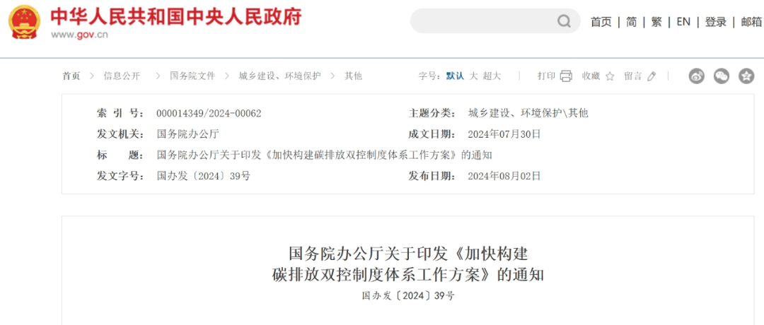 錨定減排目標(biāo) 構(gòu)筑制度體系 碳達(dá)峰碳中和工作邁入新階段 ——《加快構(gòu)建碳排放雙控制度體系工作方案》專家解讀 張英健 木其堅(jiān) 近日,國(guó)務(wù)院辦公廳印發(fā)了《加快構(gòu)建碳排放雙控制度體系工作方案》(國(guó)辦發(fā)〔2024〕39號(hào),以下簡(jiǎn)稱《方案》)。《方案》貫徹落實(shí)黨的二十大和二十屆二中、三中全會(huì)精神,對(duì)構(gòu)建碳排放雙控制度體系重點(diǎn)任務(wù)作出系統(tǒng)部署,對(duì)于建立能耗雙控向碳排放雙控全面轉(zhuǎn)型新機(jī)制、積極穩(wěn)妥推進(jìn)碳達(dá)峰碳中和、促進(jìn)經(jīng)濟(jì)社會(huì)發(fā)展全面綠色轉(zhuǎn)型具有重要意義。 一、碳排放雙控制度是實(shí)現(xiàn)碳達(dá)峰碳中和目標(biāo)的關(guān)鍵一招 近年來(lái),各地區(qū)、各部門(mén)堅(jiān)持以習(xí)近平新時(shí)代中國(guó)特色社會(huì)主義思想為指導(dǎo),深入貫徹落實(shí)習(xí)近平總書(shū)記關(guān)于碳達(dá)峰碳中和的重要論述和指示批示精神,推動(dòng)“雙碳”工作取得良好開(kāi)局和積極成效。黨中央、國(guó)務(wù)院印發(fā)《關(guān)于完整準(zhǔn)確全面貫徹新發(fā)展理念做好碳達(dá)峰碳中和工作的意見(jiàn)》,國(guó)務(wù)院發(fā)布《2030年前碳達(dá)峰行動(dòng)方案》,各有關(guān)部門(mén)出臺(tái)重點(diǎn)領(lǐng)域、重點(diǎn)行業(yè)實(shí)施方案和支撐保障方案,并系統(tǒng)部署了加快建立統(tǒng)一規(guī)范的碳排放統(tǒng)計(jì)核算體系、綠色低碳先進(jìn)技術(shù)示范工程、產(chǎn)品碳足跡管理體系等一系列重大政策措施,碳達(dá)峰碳中和“1+N”政策體系構(gòu)建完成,為碳達(dá)峰碳中和目標(biāo)的實(shí)現(xiàn)奠定了堅(jiān)實(shí)的制度基礎(chǔ)。 同時(shí),我國(guó)碳達(dá)峰碳中和工作仍面臨嚴(yán)峻挑戰(zhàn)。受新冠疫情和國(guó)內(nèi)外多重因素影響,“十四五”規(guī)劃《綱要》確定的節(jié)能降碳約束性指標(biāo)完成情況不及預(yù)期。在“十四五”“十五五”交接的關(guān)鍵節(jié)點(diǎn),《方案》首次全面完整闡述了碳排放雙控的制度架構(gòu),及時(shí)回答了碳排放雙控“是什么”和“怎么辦”的問(wèn)題。《方案》的出臺(tái),標(biāo)志著能耗雙控向碳排放雙控全面轉(zhuǎn)型取得重大進(jìn)展,為當(dāng)前和今后一段時(shí)間的“雙碳”工作明確了工作主線、指明了前進(jìn)方向、謀劃了路徑措施,對(duì)推進(jìn)“雙碳”工作具有重大意義。 二、凝聚各方力量,筑牢碳排放雙控制度的四梁八柱 習(xí)近平總書(shū)記強(qiáng)調(diào),“實(shí)現(xiàn)‘雙碳’目標(biāo)是一場(chǎng)廣泛而深刻的變革,不是輕輕松松就能實(shí)現(xiàn)的”。面對(duì)紛繁復(fù)雜的國(guó)際國(guó)內(nèi)形勢(shì),面對(duì)新一輪科技革命和產(chǎn)業(yè)變革,更需要平衡好發(fā)展和減排、整體和局部、長(zhǎng)遠(yuǎn)目標(biāo)和短期目標(biāo)、政府和市場(chǎng)間的關(guān)系。《方案》立足當(dāng)前實(shí)際,以建立健全地方碳考核、行業(yè)碳管控、企業(yè)碳管理、項(xiàng)目碳評(píng)價(jià)、產(chǎn)品碳足跡等政策制度和管理機(jī)制為重點(diǎn),系統(tǒng)部署了六項(xiàng)重點(diǎn)任務(wù)。 在國(guó)家層面,將碳排放納入總體規(guī)劃。這是將碳達(dá)峰、碳中和目標(biāo)任務(wù)全面融入經(jīng)濟(jì)社會(huì)發(fā)展中長(zhǎng)期規(guī)劃的必然要求。“十五五”時(shí)期,將碳排放強(qiáng)度降低作為國(guó)民經(jīng)濟(jì)和社會(huì)發(fā)展約束性目標(biāo),合理確定五年規(guī)劃期碳排放目標(biāo),并對(duì)重點(diǎn)任務(wù)和重大工程進(jìn)行統(tǒng)籌部署,開(kāi)展碳排放總量核算。 在地方層面,建立碳排放目標(biāo)評(píng)價(jià)考核制度。要實(shí)現(xiàn)“雙碳”目標(biāo),必須堅(jiān)持全國(guó)一盤(pán)棋,而“指揮棒”就是區(qū)域的碳排放目標(biāo)考核制度。在合理分解指標(biāo)的基礎(chǔ)上,制定出臺(tái)碳達(dá)峰碳中和綜合評(píng)價(jià)考核辦法,統(tǒng)籌建立評(píng)價(jià)考核指標(biāo)體系。推動(dòng)省市兩級(jí)建立碳排放預(yù)算管理制度,強(qiáng)化對(duì)區(qū)域碳排放的管理和調(diào)控能力。 在重點(diǎn)行業(yè)層面,建立碳排放預(yù)警管控機(jī)制。電力、鋼鐵、有色、建材、石化、化工等工業(yè)行業(yè)和城鄉(xiāng)建設(shè)、交通運(yùn)輸?shù)阮I(lǐng)域是碳減排的重點(diǎn)。要合理劃定行業(yè)碳減排的范圍,摸清行業(yè)領(lǐng)域碳排放底數(shù)和減排潛力,常態(tài)化開(kāi)展碳排放監(jiān)測(cè)分析預(yù)警,并視情采取管控措施。 在企業(yè)層面,強(qiáng)化節(jié)能降碳管理制度。重點(diǎn)用能和碳排放單位是碳排放管理的“牛鼻子”。要制定出臺(tái)重點(diǎn)用能和碳排放單位節(jié)能降碳管理辦法,將碳排放管控要求納入現(xiàn)行重點(diǎn)用能單位管理制度。充分發(fā)揮市場(chǎng)機(jī)制調(diào)控作用,擴(kuò)大全國(guó)碳排放權(quán)交易市場(chǎng)覆蓋范圍,探索配額有償分配機(jī)制;健全全國(guó)溫室氣體自愿減排交易市場(chǎng),推動(dòng)更大范圍減排;完善綠證交易市場(chǎng),促進(jìn)綠色電力消費(f