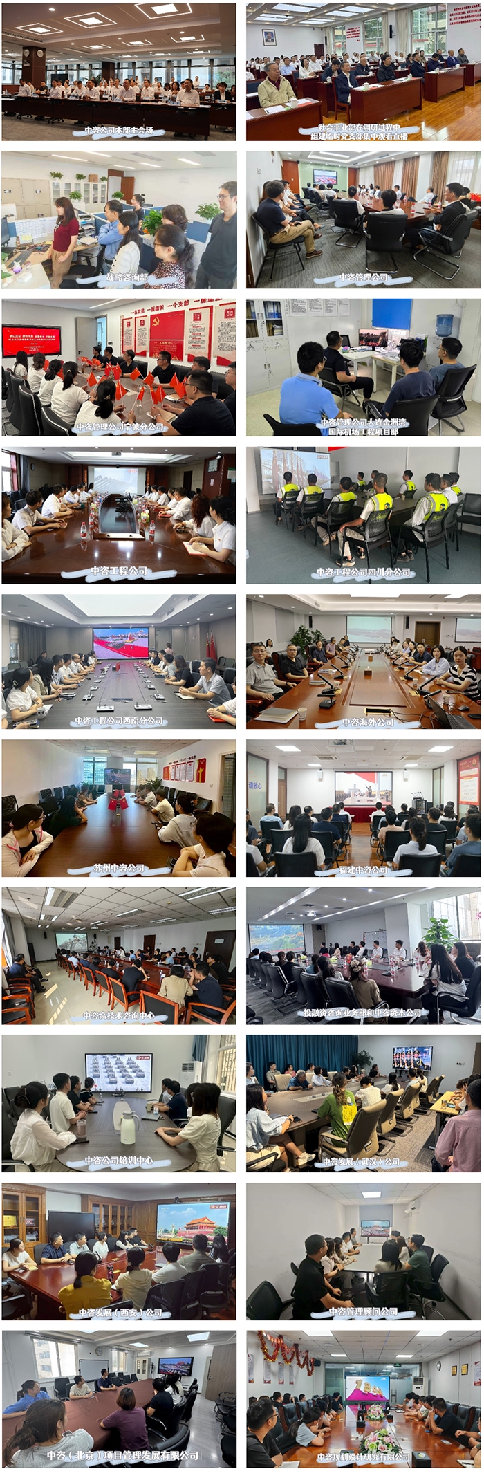 旌旗獵獵,禮炮轟鳴 2025年9月3日的天安門(mén)廣場(chǎng) 一場(chǎng)告慰歷史、致敬未來(lái)的史詩(shī)震撼上演 徒步方隊(duì)步伐鏗鏘 裝備方隊(duì)轟鳴震天 國(guó)產(chǎn)戰(zhàn)鷹劃破蒼穹 中咨公司黨委書(shū)記、董事長(zhǎng)茍護(hù)生 中咨公司黨委副書(shū)記朱嵐 應(yīng)邀赴現(xiàn)場(chǎng)觀禮 親身感受這一莊嚴(yán)時(shí)刻 十里開(kāi)外的中咨公司西辦公區(qū) 以及全國(guó)各地的項(xiàng)目一線、海外現(xiàn)場(chǎng) 中咨公司干部職工也凝神聚目 集體觀看直播領(lǐng)略盛況 在驚嘆、感慨與思索中 共同見(jiàn)證這一莊嚴(yán)時(shí)刻 為歷史守望 為祖國(guó)喝彩 為未來(lái)蓄力 各部門(mén)、所屬企業(yè)組織集體收看 這一刻,我們與祖國(guó)同頻共振 上午9時(shí),紀(jì)念中國(guó)人民抗日戰(zhàn)爭(zhēng)暨世界反法西斯戰(zhàn)爭(zhēng)勝利80周年大會(huì)在京隆重舉行。當(dāng)天安門(mén)廣場(chǎng)上國(guó)歌響起,觀看直播的干部職工自發(fā)起立,齊聲唱響《義勇軍進(jìn)行曲》。 中共中央總書(shū)記、國(guó)家主席、中央軍委主席習(xí)近平發(fā)表重要講話,深刻闡述了偉大抗戰(zhàn)精神的時(shí)代意義,指明了以史為鑒、開(kāi)創(chuàng)未來(lái)的前進(jìn)方向,為新時(shí)代國(guó)防和軍隊(duì)現(xiàn)代化建設(shè)提供了根本遵循,為全體中華兒女共筑民族復(fù)興偉業(yè)注入強(qiáng)大精神動(dòng)力。 閱兵儀式上,習(xí)近平主席檢閱部隊(duì),受閱官兵齊聲高呼:“聽(tīng)黨指揮!能打勝仗!作風(fēng)優(yōu)良!”“正義必勝!和平必勝!人民必勝!”聽(tīng)到受閱戰(zhàn)士聲震長(zhǎng)空的吶喊,觀看直播的干部職工也被點(diǎn)燃萬(wàn)丈豪情。 直播中,不時(shí)出現(xiàn)百歲抗戰(zhàn)老兵對(duì)受閱部隊(duì)和現(xiàn)役主戰(zhàn)裝備敬軍禮的畫(huà)面,他們面容已蒼老,但目光卻何等堅(jiān)毅。80多年前,他們挺起了民族的脊梁,今天,胸前的勛章在和平的陽(yáng)光下熠熠生輝。 “他們是歷史的親歷者,遙想抗戰(zhàn)崢嶸歲月,回想自己的軍旅生涯,深感今天的和平來(lái)之不易?!?strong>服務(wù)中心王振勝,一位有著30年黨齡的退伍軍人動(dòng)情地說(shuō),“一代人有一代人的使命,我們要用中咨人胸懷‘國(guó)之大者’的擔(dān)當(dāng),為國(guó)家重大戰(zhàn)略落地貢獻(xiàn)專業(yè)力量?!?/p> “硬實(shí)力”擔(dān)當(dāng),為中央企業(yè)打call “東風(fēng)-5C液體洲際戰(zhàn)略核導(dǎo)彈是我國(guó)戰(zhàn)略反擊體系中的重要組成,打擊范圍覆蓋全球?!笔状卧陂啽鴥x式中聽(tīng)到這樣“霸氣”的解說(shuō),干部職工們的臉上寫(xiě)滿驕傲和自豪,內(nèi)心充滿強(qiáng)烈的民族自豪感和安全感。 備受矚目的分列式環(huán)節(jié),45個(gè)方(梯)隊(duì)依次通過(guò)天安門(mén)廣場(chǎng),按照實(shí)戰(zhàn)化聯(lián)合編組,包括陸上作戰(zhàn)群、海上作戰(zhàn)群、防空反導(dǎo)群、信息作戰(zhàn)群、無(wú)人作戰(zhàn)群、后裝保障群和戰(zhàn)略打擊群等,集中展示了我國(guó)國(guó)防科技工業(yè)的自主創(chuàng)新成果。 此次閱兵中,中央企業(yè)自主研發(fā)裝備成為“硬實(shí)力”擔(dān)當(dāng)。中咨公司作為工程咨詢領(lǐng)域國(guó)家隊(duì),近年來(lái)服務(wù)國(guó)防和軍隊(duì)現(xiàn)代化建設(shè),為強(qiáng)國(guó)強(qiáng)軍貢獻(xiàn)中咨方案。 看到實(shí)戰(zhàn)化編組依次受到檢閱,國(guó)防業(yè)務(wù)部朱文慧對(duì)驚艷亮相的“大國(guó)重器”如數(shù)家珍:“此次閱兵集中展示了我國(guó)國(guó)防和軍隊(duì)建設(shè)的最新成就,無(wú)人作戰(zhàn)群、信息作戰(zhàn)群等新質(zhì)作戰(zhàn)力量的亮相,凸顯了現(xiàn)代戰(zhàn)爭(zhēng)形態(tài)向智能化、無(wú)人化、體系化發(fā)展的深刻變革。信息主導(dǎo)、智能賦能、多域融合成為新特點(diǎn)。戰(zhàn)爭(zhēng)不再局限于傳統(tǒng)的陸??杖S物理空間,而是向網(wǎng)絡(luò)、太空、電磁、認(rèn)知等新興領(lǐng)域迅猛擴(kuò)展。這是一次從‘能量密集型’向‘信息密集型’的根本轉(zhuǎn)變。這些裝備不僅體現(xiàn)了我國(guó)國(guó)防實(shí)力的提升,更展現(xiàn)了國(guó)防科技創(chuàng)新的重大突破。” 中咨高技術(shù)咨詢中心王鵬表示:“作為國(guó)防軍工體系建設(shè)的參與者與獻(xiàn)策者,切實(shí)感受到我們的咨詢?cè)u(píng)估意見(jiàn)建議,正通過(guò)無(wú)數(shù)大國(guó)工匠之手,一件件變?yōu)槭刈o(hù)國(guó)家安全的現(xiàn)實(shí)力量。我們也看到,中國(guó)軍工制造實(shí)現(xiàn)了從‘能用’到‘好用’、從‘制造’到‘智造’的飛躍。未來(lái)我們將以更飽滿的熱情、更前瞻的視野,深耕主業(yè)、建言獻(xiàn)策,助力國(guó)防科技工業(yè)和軍隊(duì)建設(shè)高質(zhì)量發(fā)展、為實(shí)現(xiàn)強(qiáng)軍夢(mèng)、強(qiáng)國(guó)夢(mèng)貢獻(xiàn)智慧與力量?!?/p> 閱兵現(xiàn)場(chǎng)照片 新征程,中咨人這樣拼! 今年以來(lái),中咨公司各部門(mén)、所屬企業(yè)以紀(jì)念中國(guó)人民抗日戰(zhàn)爭(zhēng)暨世界反法西斯戰(zhàn)爭(zhēng)勝利80周年為契機(jī),積極踐行公司“五五戰(zhàn)略”,貫徹落實(shí)公司“改革攻堅(jiān)年”部署,將偉大抗戰(zhàn)精神轉(zhu